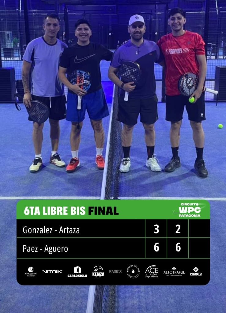 Este fin de semana se disputó una nueva fecha del circuito World Pádel Center Patagonia, una de las últimas antes de los Masters, que enfrentarán a algunos de los mejores jugadores de pádel del alto valle de Río Negro y Neuquén en Cipolletti, buscando cerrar el año en lo más alto. Se jugaron torneos en las categorías Segunda, Cuarta y Sexta libres, y Cuarta y Sexta damas, con gran concurrencia de jugadores y una buena presencia de público.